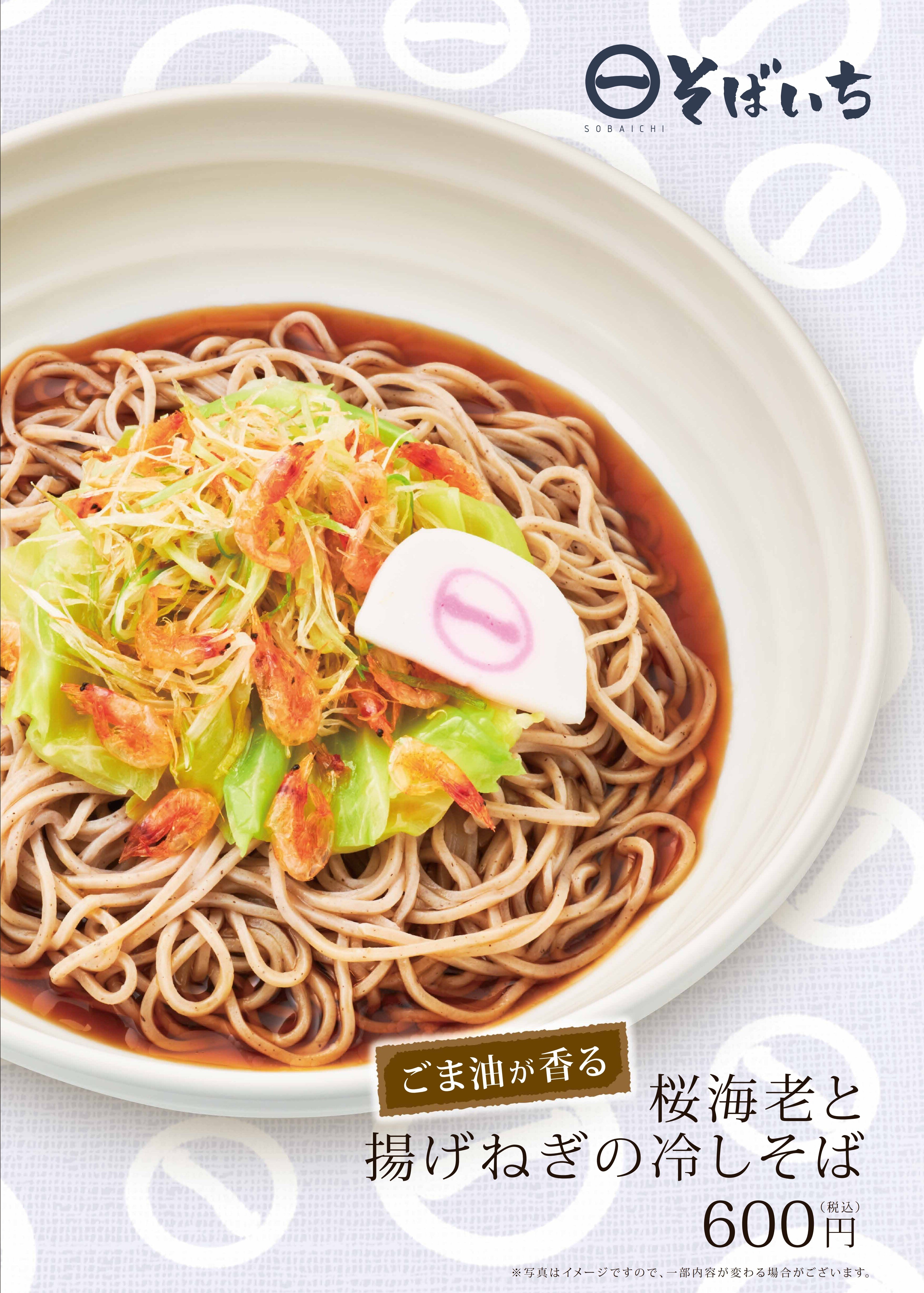【商品名】 桜海老と揚げねぎの冷しそば600円(税込)素揚げした桜海老、白髪葱の香ばしさとキャベツの甘みに加え、ごま油の香りと旨味も楽しめる満足感の高い一品です。【販売期間】2021年3月10日(水)~6月9日(水)