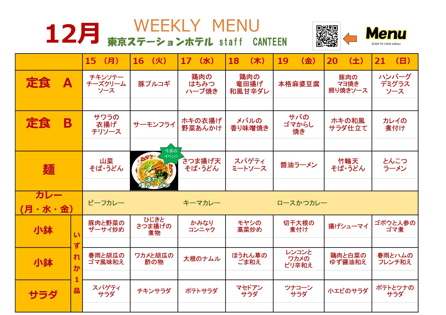 東京ステーションホテル Staff CANTEEN ~今週の献立~